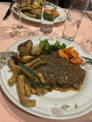 The service is old school in a positive way, kind, friendly, polished but not intrusive. The atmosphere is warm and the décor very retro, also in a good way if you are late middle aged and lower middle class and want a trip back to your youth.