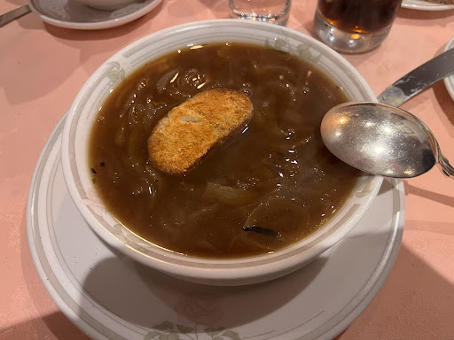 The mains - Crispy Duckling with orange, cherry or apple sauce and a rib eye steak were just OK. The duck was dry and the famous crispy skin was indeed quite crispy in parts. The Rib Eye Steak Special was enormous but not otherwise special in any sense. It is the vegetable selection that gave the game away. The boiled sprouts and the green beans were unadorned either by sauce, butter or gravy (this is a French restaurant after all, no gravy in sight) so were just as unappetising as anything your granny may have given you. It certainly took me back: to the time when I really hated green beans.