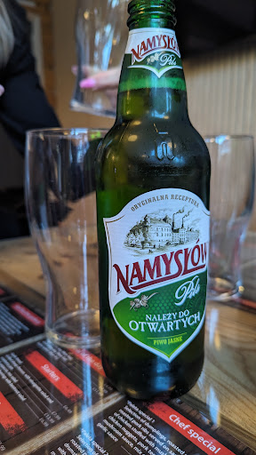 The food was less than mediocre. I had red borscht which actually doesn't taste like beetroot, the main ingredient. You'll find ready soups at supermarkets with a more authentic taste. My mum couldn't finish her żurek, so I finished it to not waste food. Again it didn't really taste all that great and was very watery and the sausage was overcooked. I had ordered pork ribs and they were rather unpleasant, I could taste that the ribs (which were all separate) came from different batches because only one piece has no boar taint, whilst the other pieces were a range of how much boar taint you could taste. To top it off the meat was also of different textures rib to rib and even in some cases, section of rib to section. So if you enjoy eating dry rubber, these ribs are a dream come true for you, I personally like it when the ribs are tender and juicy so these were absolutely rancid. At one point I swallowed such a chewy stand out meat that I unconsciously gagged. Basically our whole party was unimpressed by the food.