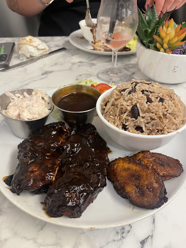 Read moreLovely family run restaurant with an extensive assortment of dishes to choose from the detailed menu list. Originally had my mind set on some Oxtail, but unfortunately it was not available at the time due to high demand. My alternative did not disappoint and was a great meal that left me full from the generous portions. For starters, the Chicken wings in Jerk sauce hit the spot and got the taste buds in a frenzy, followed by a sweet side portion of plantain fresh and dried from the fryer. My original choice for the starter was the boneless Jerk chicken, stuffed in fried dumpling but again this was not available. I sat in for dinner with 2 friends, and one thing that was commonly noticed was the influx of takeaway orders from customers and uber delivery drivers, this place is popular! My main meal consisted of Akee and Salt Fish served with Rice and Peas (other rice options are available), coselaw, fried plantin and salad. Tasted so so good and it went down nice, again beautifully presented generous portions, no skimping at this restaurant! Also to mention, their drinks menu which has a great selection of a variety of beverages. The staff were very friendly, welcoming and helpful and provided excellent customer service throughout. I would definitely visit again as I'm certainly sure their Oxtail will go...