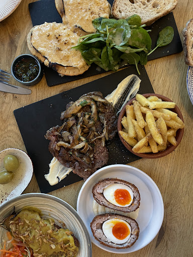 Read moreNice concept but needs some improvement. The olives from Spain were really great. The Arancini, delicious. The crab Thermidor Mac n cheese also good. The scotch egg was very good with a crunchy and well seasoned exterior and a perfectly cooked egg. Sadly, the steak that was ordered medium rare was closer to rare leaving the fat not rendered and an overall chewy experience - would also be better sliced as it was a sharing plate which made it a bit difficult to slice and share.
