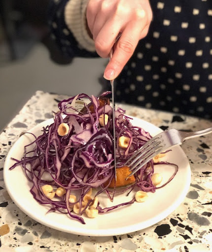 The Squash, red cabbage, hazelnuts & ricotta salata (which we had wihtout the ricotta to make it vegan) was a light and refreshing dish. The hazelnuts added a great texture.