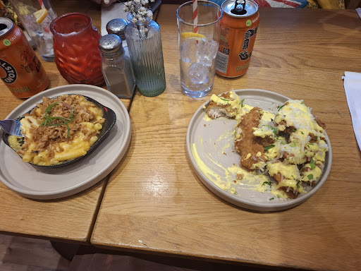 Food was great but only critique I can give was as that our burgers came without the sides for 3min and as a chef myself whom worked from honest burgers, fallow, hawksmoor, Dorchester and now a headchef at a prominent contract catering sector I can safety say that the burgers should have stayed at the hot pass which was free of space and wait until the sides were ready to bring the order.