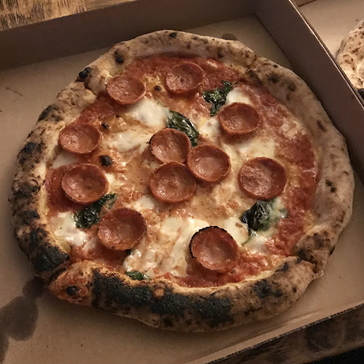 Been here twice in the last week. On Saturday we ate in and were squeezed in last minute without a table which was great. It’s a small place but nice and rustic. All of our pizzas were great but my son’s pizza with salami was too spicy for him (we didn’t realise it said spicy salami on their chalkboard menu on the wall). My wife and I’s pizzas were fabulous. What caught us by surprise was £3.25 for 11 olives, £2.00 for a tiny pot of chilli oil and 50p for chilli flakes. Never been charged for chilli oil or flakes even in Napoli. Understand they’re a new business but there was no warning of this and not even the chalk board let me know. Waitress tried to say it’s on there but admitted it wasn’t after I challenged her. Tonight we ordered and was told to be there at 6:15. Arrived on time. Was told it’ll be a further 5mins at 6:17. At 6:28 I was approached for payment and when I asked how long, was told it’ll be another 2 mins. At 6:37 it’s finally in my hands. Didn’t appreciate the poor service. Aside from that, the pizza just didn’t taste the same. We live 5 mins away by car. Dough was chewy and didn’t have that great rich taste especially with ingredients like the beef for the Manzo pizza. Maybe it was just an off day but Saturday was just as busy so don’t understand the difference. A sorry for being 22mins later than told and keeping my car running wasn’t great with no gesture of goodwill to truly say sorry. Do better guys because the Saturday on pizza was phenomenal and learn to manage expectations better.
