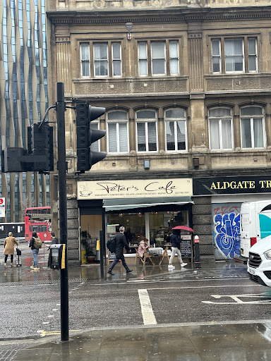Peter's Cafe is a stereotypical British style cafe in Aldgate, close to the city. As such there's a mix of business people, workmen & tourists etc who come to the cafe. As a typical British cafe, it serves the standard British breakfast of beans, toast, fried eggs and hash brown. This also do a vegetarian version of this which is served with either tea or coffee.