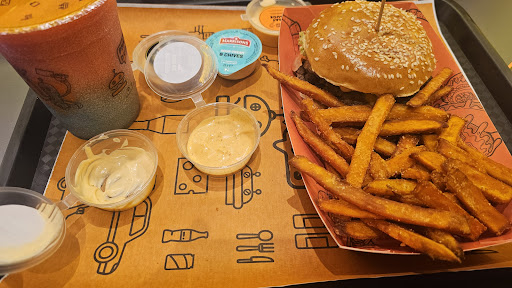 Read moreHalal ✅ reasonable prices✅ good food✅ Good atmosphere and clean environment. Love the theme and interior and great that it's open late. Menu is good and well organised making it easy to pick with a variety of burgers and desserts and drinks. We waited a fair amount of time for the food to come but it all came together one by one so it's always good when we're not just sitting watching the first person eating. They did however forget ALL of our drinks... So we sat there eating without drinks and could hear the staff having to be reminded to make and serve our drinks.