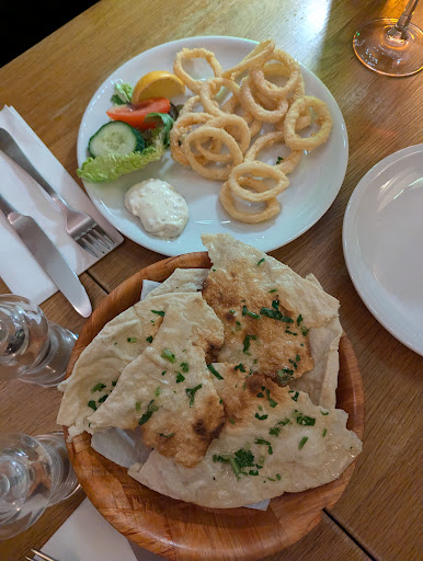 On this occasion we ordered calamari, prawns on avocado, garlic bread and the seafood linguine - we polished off every last bit and momentarily thought of ordering more on the back of how delicious it was, alas the stomachs were not able for it.