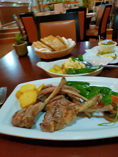 I chose "medium rare" lamb cutlets, and the kitchen lost its fifth star by bringing lamb so rare that it was inedible for me-- but they quickly gave it extra grill time and my six cutlets were delicious. As a huge plate of veggies always comes included with most dishes, I didn't need a dessert (or starter).