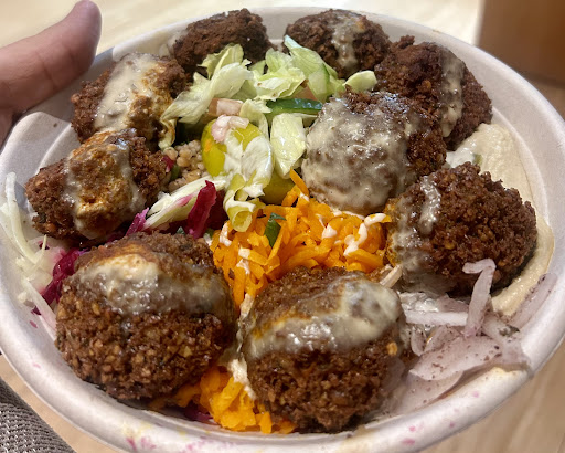 there’s not much seating inside, so it’s nice to take it on the go and eat in the sunshine. try to beat lunch time rush and go around 11am or after 2pm. I’d eat here again but maybe go for the pita instead of the container as it’s a big bowl of plastic. hopefully one day they’ll change the container to a more eco...