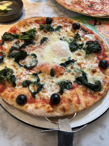 I went there with my sister and her 1yo baby. I'm giving one star only because of the service. During our lunch the staff, the waitress who was serving us was actually really nice and made us feel welcome. However, the whole visit was all in all far from being great. We both ordered pizzas. My sister said her was OK. I've ordered vegan one plus 2 sides of rocket. First of all the pizza was below avarage, I would say the worst I have ever had and I had a few in my life. The crust was totally burnt, onion and mushrooms were raw and I barely got any vegan cheese on top. Second thing, I asked for 2 sides of rocket, just plain rocket. I got two handfuls of it with parmesan and balsamic vinegar on top. I'm vegan, so I didn't touch it and asked for another 2 but plain, just plain leaves. And, yes, I like lots of rocket on my pizza, therefore straight away went for two portions, cause I didn't count on that one it's gonna be enough for me. However, I was surprised how little it actually was, so half way through ordered the third one. When it came to paying, I looked at the bill, they have charged me £4,30 for each of ordered side of rocket!!! £4,30 for few plain leaves! I paid £12,90 for less than I would get for £1 in the supermarket next door! 12,90 is actually the prize of the pizza in comparison. I get that it's restaurant, so i know it will be more expensive than coop but come on... 12,90!!?? And I didn't even touch one of them cause it had cheese on top and this was not what I asked for. I paid it and left cause didn't wanna cause any issues, as I already was probably annoying for them, but I regret I didn't challenge it. Besides, the women who delivered the third handful of rocket to our table gave me a look as if I killed her entire family (she was the other waitress, not the one who I said was nice and served us at the beginning). Also, there were two other tables in the area we were sitting. They both got their food way quicker than us, even if we were before them to order, and they had pizzas as well. There was another thing going on, but that we both found rather funny, not problematic, when my sister had a brownie ordered, and we asked 4 times for it to be delivered before they brought it, including one time when instead of desired brownie the waitress brought us the bill. I don't go out very often, I do it as a treat, so when I go I really wanna enjoy the food I'm having. This was tbh pretty awful, half of it inedible and way(!) overpriced. I work in hospitality myself so I know that when we showed up at the door with a toddler we could be taken as a potential damage (because of the little one who was running around like crazy;)) so I really appreciate that they accommodated us. It wasn't very busy tho, so I can't see why would that be a problem, however, still the beginning of our lunch experience that day was very nice! Just whatever happened after was pretty bad. It's very VERY unlikely that we will go...