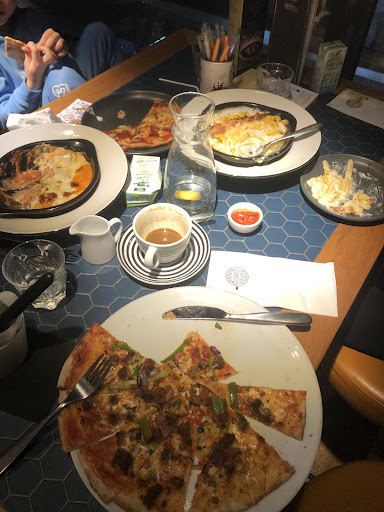 Read moreI should not have to flag down a member of staff just so I can order after being sat down for 30 minutes. Nobody within those 30 minutes came over to even ask if we’d like some water, let alone food. Finally, when I flagged down someone taking another customer’s orders, I admit I sounded a bit rude and angry (because I had been sat down for so long with zero service) so the member of staff clearly went and called the manager to deal with us because of my attitude- an attitude I wouldn’t have had if anyone in this restaurant had done their job and taken our order. Zero acknowledgment of us sitting down for so long without them serving us. Unsure what seating system they’re using (I’ve worked in restaurants before) but either they don’t know when guests are being sat or they simply don’t care. A couple was sat maybe 5 minutes before us and ate their starter and got served their main meal before we were even able to order- I don’t understand why we were given such a different level of service. Thankfully, the lady who served us our food was very sweet and our pizzas and drinks came out quickly once ordered and our pizzas were great. We ordered cocktails and tap water via the manager and they forgot the water, but the lady who served us got it right away when we asked again. At least we got to bond over the horrible service with the mother and daughter sat next to us who also agreed that the service was egregious- because they had watched us sit there for half an hour and even they had been asked by a member of staff if they were all good but nothing was said to us. To top the entire experience off, the manager suggested to order the dessert later. I ordered the tiramisu and got it within 5 minutes and the bottom was still semi frozen, as it had a certain crunch to it that is only there if not defrosted properly (either that or their fridge is way too cold). Should have walked out after 15 minutes but honestly wanted to see if they could make up for the wait which they did not. Luckily I have the app and got the dough balls for free and service charge/tips is optional. I’ve visited almost all restaurants in that food court area and this restaurant is by far the worst one. Definitely recommend Las Iguanas or...