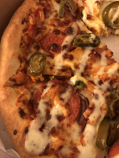 Also, the toppings they use is shocking so little there was literally 4-5 jalapeños in one large pizza 😂 I felt like was eating bread only.