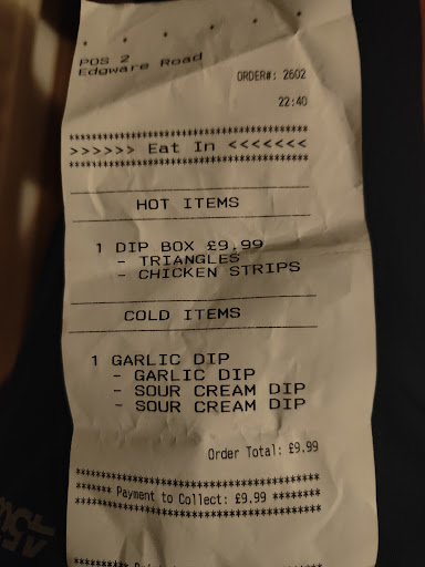 Read moreThis is the third time I have had an issue with this Branch, On each occasion I have had an issue with delivery, the delivery delay on each occasion was approximately 60 minutes. However yesterday was when I ordered there was an issue with the Delivery, Customer Service and the actual Pizza itself? I had placed the order online, and I called the store to ensure my order had been placed! I had asked if he could please make sure that the BBQ dips are sent, as I once had an issue where no sauce came. He informed my there was no BBQ dips left, which I can accept and understand, so I asked him for an alternative Garlic Dips, he was very rude and abrupt on the phone, however I just ignored this at the time.... 50 minutes later my Pizza still hadn't rived, I called the store and spoke to a young lady and she informed me there were severe delays with the driver, which always seems to be the case when I order from here! Clearly more staff needed....... 1:15 minutes later the delivery man turned up and was the most unhelpful delivery man ever! He opened the bag, and made me take out the boxes, he could see I was struggling but didnât even bother helping... After he left I saw the condition of the actual pizza box, The box was wet firstly, and damaged at all ends. The pizza was cold it was just horrendous, they also gave me only 1 sauce and the wrong sauce!!!!!! I called up to complain and asked for a manager, whilst I was complaining, he said I have to put you on hold the pizza's are burning! I work in a hospitality industry and cannot work out how this is acceptable? I was on hold for over 25 minutes ( I have screen shots too if you require) I called back and spoke to the young lady, she hung up on me, at this point I was furious, I kept on calling they either didn't answer, or just were sooo sooo rude! AVOID AVOID...
