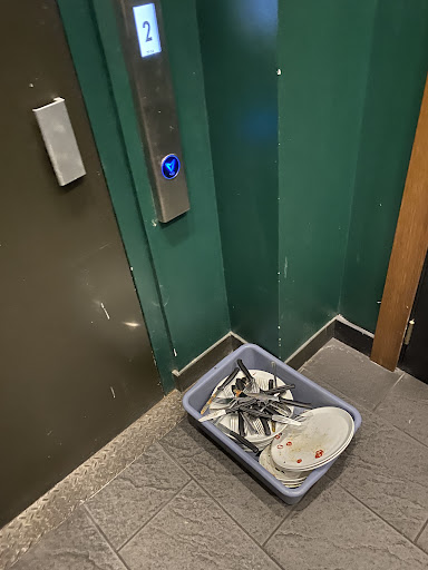 Go to the toilet while I'm waiting to stumble across the cutlery I couldn't get for my meal. It's stacked high in a plastic tub, on the floor, in the hallway en route to the customer toilets left alone next to a lift. This is now disgusting.