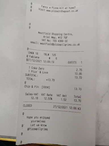 Overall, Pizza Pilgrims at Westfield is not just a place for great pizza; it's an experience enhanced by excellent service. A big thank you to Deepika for making our visit memorable. I'll definitely be returning for more delicious pizza and exceptional hospitality.