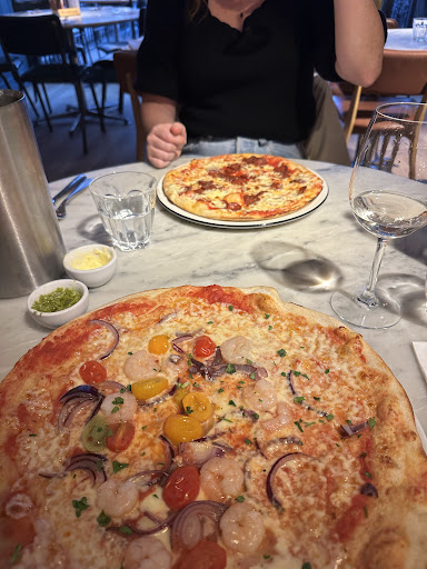 Pre-book for a work celebration night everyone was looking forward to. Once drinks were ordered took a while to come out. After ordering food it took about an hour for the few people that ordered a started and 15-20 minutes more for the mains! As if this wasn't bad enough some of the pizza bases were burnt and other soggy to the point of being inedable. I found bit weird for a pizza based restaurant to not be able to cook in a timely manor and to be cooked so poorly. Then I saw why, another person at my table found a hair in there pizza, colour and length clearly noone at our table's. The waiter did offer to cook something else but clearly wasn't bothered, apologetic or embarrassed by the presence of hair in the food! The pizza I had myself tastes ok but was soggy, didn't really fit onthe plate and was therefore hard to slice with the pizza cutter handed to me. Someone else at my table did however assure me that other pizza expresses they'd been to were nowhere near this bad. So maybe just avoid this one. I most likely will not be returning to any pizza express...