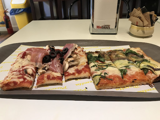 Read morePoor taste and experience. Went to have a quick bite while in South Ken, I am unimpressed, pizza is too salty and the dough is mediocre at best. My calzone was undercooked with the mozzarella and tomato inside lukewarm and slimy (clearly pizzas are prepared well in advance or sit unsold for a while before they are lightly reheated in a warm oven), I took 2 other pieces away but not even after 10 mins in the carton they look and taste they have been out a few days already with a shiny glaze of cheap fat on top of them all… The fact that they sell it in squares ( as in Italy ) does nothing to compensate for the off flavours. It is not cheap either 19 quid for 3 slices and a coffee…