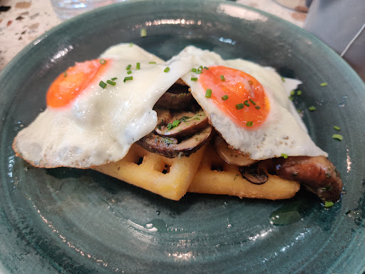 Ā Ā Ā Read moreThe seats were covered in crumbs which I wiped off myself. I ordered the sausage, waffle, egg thing expecting a delicious treat from the description. Unfortunately, the meal arrived and looked like it had been thought of, executed, and presented by a 12 year old. The waffles were limp and cooked from the freezer bag... the sausage 'meat' with a square of melted cheese on top looked like tarted up roadkill - tasted bland. Bacon was undercooked so you could see the white fat glisten - the meat low quality. The coffee was good and the staff kindly refunded my meal (which I only sampled ) so I very much appreciated this. Will not be coming back, alas. I've never experienced such a disconnect between the online reviews and the reality as I did with this experience/meal.