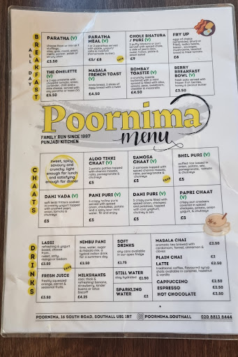 staff is lovely & polite (4 stars). food is below average (2 stars). They need to get the balanced right. for example- Bhatura should always be a puffed up bread when served, however, here, it felt like itās made by someone who may lack skills. When someone comes to eat in a restaurant, they look for something they cant make at home & it carries a unique flavour. Professional cooking is a unique skill. Otherwise whats the point of eating out if its below basic. i think thats the key issue in UK - someone who may think they can cook, they open up a restaurant without grasping key skills. if you ever get a chance to go to India, you will see that people in India running small restaurants are actually quite skilled as they target perfection on daily basis for each customer. In the UK, a lot of people gets into opening up restaurants but mostly they carry no real passion or real skills to main consistency on daily basis. Sholley (chickpea curry) were quite salty. They served me Halwa/ Karah (sweet pudding) and it was a mix of orange colour halwa and a non colour halwa - almost like some left overs mixed up and served to me - if you notice other people picture with similar plate, you will see there is quite a difference in colours for this halwa and even colours for Sholley (chick pea) varies too. Its Southall and standards should be high considering itās a hub for Punjabis. Paronthe were good (3 star). Masala Tea (0 star) - I was quite shocked with it - I am Punjabi myself and I think they are doing something seriously wrong with their tea. Again, staff is polite and lovely but food quality & standards requires attention. Hope this feedback will help...