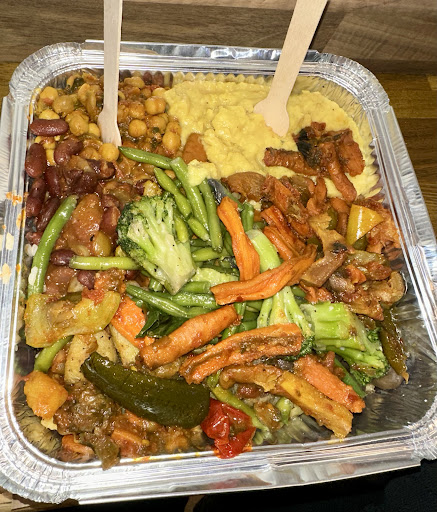 They had a small dining area and since the place wasn’t massive, we were happy to have the option to eat in. The food was also very reasonably priced, especially considering the high quality and freshness of the ingredients. As a vegan, I was thrilled to find so many delicious options that were clearly labeled and prepared with care. Also, 90% of the food options were vegan. The non-vegan options are clearly labelled.