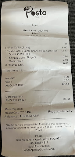 Read moreSad to report that the food we sampled recently was very poor. We ordered a chicken lollipop, steamed rice, tadka daal, aloo Posto and fish kalia. The chicken lollipop was over-fried to the point of being inedible, the tadka daal tasted and looked like daal that had been in the fridge and subsequently heated up inadequately as it was lumpy and did not seem to have any tempered spices for flavour. In fact ‘tadka’ or ‘tarka’ in Bengal is an entirely different type of daal as far as I know that is sometimes cooked with egg or meat, but this may have been a North Indian take on it. The aloo Posto was about the only item that was moderately acceptable. However most bengali households would most likely be able to knock up a better tasting version of this. The rohu fish in the kalia had no taste at all and it tasted like it the fish had been quickly combined with a separate onion rich sauce. I feel sad that this establishment has gone downhill since we first tried the place when it opened. Our first couple of visits went very well but since then we have visited or taken away food on multiple occasions and every time it has been well below expected standards. I do not know if this particular trip was an unfortunate one off but we feel short changed by our recent trips where the food has more often than not been...