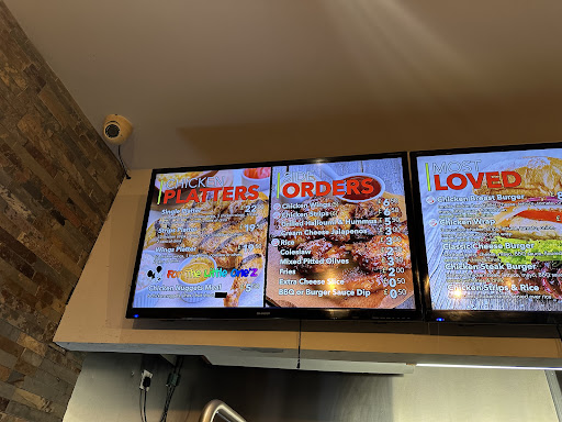 Read moreI went for dinner and I ordered two items. Single platter (£22.00) which includes 1 whole chicken, 3 chicken wings, 3 chicken strips, 1 box rice, 1 fries, 2 cans and a bowl of colslaw/olives (they forgot to give us colslaw/olives and we did not notice :( ) second is Premimum 12oz beef burger (£11.50) that comes with fries and drink. Burger contents are in the menu picture. There is no menu in print but available on tv screens shown in the pictures. The food was hot, very delicious and large quantity. We really enjoyed the food. Chicken was covered with special sauce of spices and burger was super tasty. The service was excellent and the cooking/serving guys were very nice. The dine in environment is 3*. The seats are not comfy, in fact there are narrow benches which are difficult to sit-in particularly for kids and they can easily fall off. The sitting area is small and it was freezing cold. I asked the guy to turn on the heater and he said it is not working. I think they discourage people sitting in and encourage take away. They have sweet at the till and offer it to children...