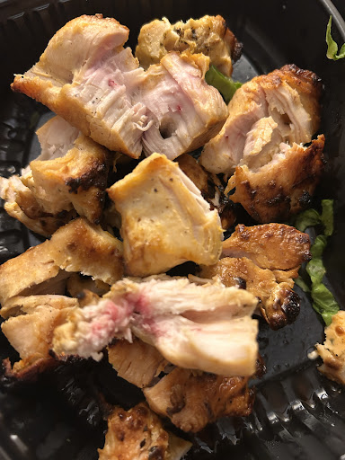 The food tasted good. The meat seemed well cooked and seasoned. The bread was more large than pitta but still tasted good.