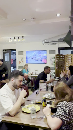 Ordering is done at the front, with food brought to your table and payment at the end. Customer service can be inconsistent. The seating is tight, and noise levels are high. A significant concern is the blocked access to the restroom, which poses a health and safety risk.