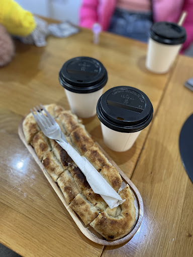 We warmed up with hot chocolate and some yummy desserts for the kids. For myself, I enjoyed a coffee latte and my friend opted for a cappuccino with oat milk. She also mentioned that you have delicious savory pastries called burek, and let me tell you, she was right!