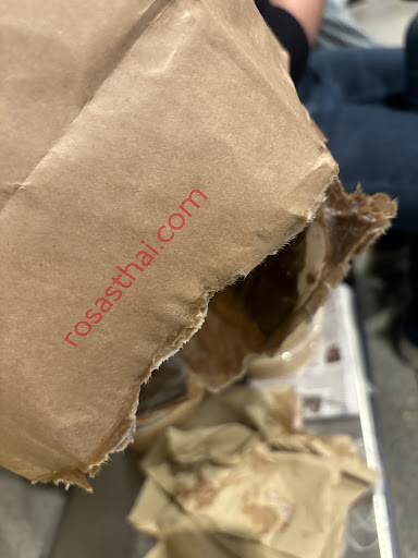 When I was on the train just only 10 minutes walk from away from the restaurant, the tom kha soup suddenly started to leaking and dripping, and the bottom of the paper takeaway bags were also broken.
