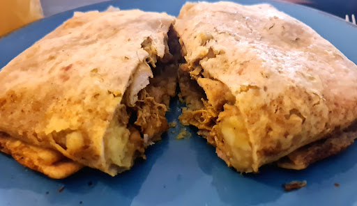 The Roti is excellent quality, I had mine full of curry goat (no bones) and pepper sauce, absolutely Fantastic, generous portion of tender meat in a superb mild curry.
