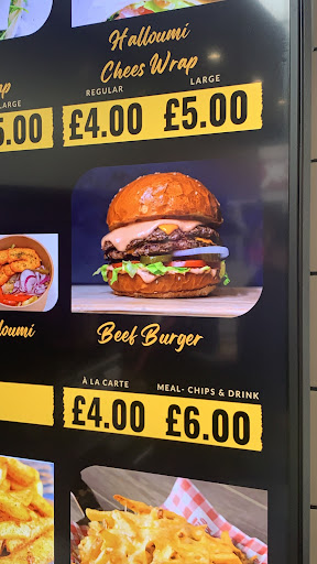 Read moreDreadful burger meal. The photo shows the burger bun with two beef burgers, salad and cheese melt and price £6. Ordered two of these and a Hulumi and cheese wrap.