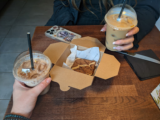 The absolute sweetheart on the counter was a bit flustered and made a couple mistakes while ringing up our orders and giving us our drinks, but she was really nice and apologetic about it (even though it was all easy fixes), and her and her colleague gave me friend and I a free baked good!