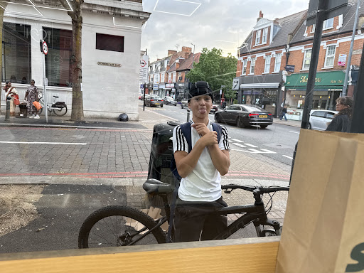 The premises are bright and clean, with a nice sheen (in East Sheen). There are some stools to sit on facing the window.