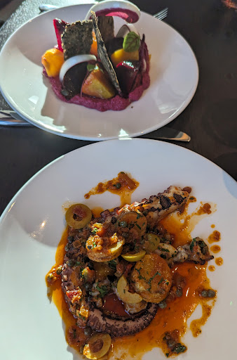 It's still soft opening training time and there was a wait for our mains. But the reason was that something was not right, and needed redoing. They gave us a complementary bottle of red, which made the wait into a positive time to catch up, chatting with friends from way back. The soft opening deal was half price food, and that let us really go for whatever we wanted, eg wonderful octopus starters. It was all really good, and the friend to my left said her beetroot starter was the best starter she's ever had, it certainly looked beautiful. We'll be back with different friends tomorrow. What a wonderful new asset for Brentford!
