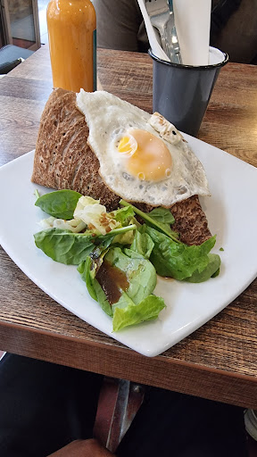 Read moreMy friends and I ate here for brunch yesterday around 1pm. Granted it was busy but the staff seemed really slow for the most part. Slow to come take orders (had to ask someone to come to our table and even then the woman took a leisurely stroll to get there), had to wave someone to refill water during our meal, had to get up and ask a server to get our bill and that took a while. Our waitress for the most part, was unfortunately, a nonsmiling young woman with two small buns on her head; she was nothing short of surly. When the galettes came, she stood there with the plate and barked the order. When the bill came, she actually somewhat tossed the small plate the bill was in so that it clattered on the table. I remember my other friends looking startled.