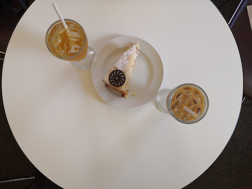 Super hot day and we found on Google this cute little cafe/bookshop. Don't be put off by the decor, it's dated and reminds me of the 90s with all the children's books. However, the staff are super friendly, attentive and helpful. We got an iced lemon tea, iced soy decaf coffee and a GF Victoria sponge (~£8-9). The iced coffee included a syrup too, which I asked more of as I couldn't taste it and they were very kind to add some more. Drinks were good and the GF cake was a bit on the dry side but it was still very tasty. Plenty of seats and fairly quiet place to hang out with friends/study/for a drink. Definitely will go again! Thank you to the lovely staff...