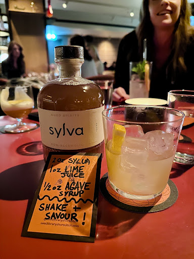 As a pregnant woman, I was thrilled to find several nonalcoholic options both on and off menu. Our server Zach was phenomenal, he obviously knew the menu very thoroughly and helped us in selecting drinks that matched our taste and preferences. The bartenders crafted a bespoke mocktail just for me using non-alcoholic aged spirits from Sylva Labs, a new brand experimenting with wood-aged zero proof spirits. It was honestly the most “cocktail-like” mocktail I’ve had. Not only did Zach provide the recipe and tell me about the Sylva brand, but he also gave me a bottle of Sylva Hazel to take home since it’s not yet available in the states. My friends and I were floored by that thoughtful and generous gesture.