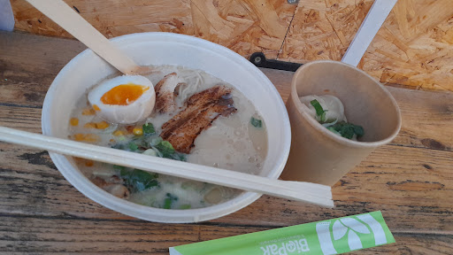Read moreI have wanted to visit this food market near Broadway Market for a while, but I never found the time to, and I was craving something after not feeling so well from a pounding headache this afternoon. It had been a while since I had noodles and dumplings, so I opted to give SEN NOODS a try. I went for the Cha Shu Tonkotsu Ramen with pork dumplings. The dumplings were flavourful and juicy. I am not really a fan of milk flavoured noodles, but I think I would try these noodles again, but I intend to visit this food van again and try other options.