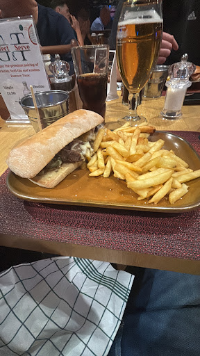 Food was absolutely stunning! Halloumi fries for starter with gorgeous dip with a little more heat then your average see chilli sauce and a steak sandwich which was absolutely beautiful the steak so tender and moist! The drinks though, smelt strange, unsure as it was the glasses of the drinks themselves but a few people took theirs back and changed it, I for one did and then shortly afterwards had a Pepsi which was quite flat! The place itself is really nice, full of character and the staff are really nice and helpful, all in all a nice night had there! Other dishes our table had, makhani curry, various burgers, calamari, not a bad word to be said...