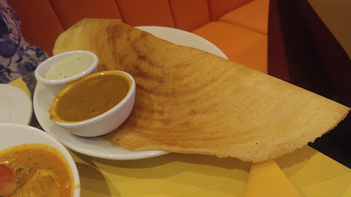 We'd already ordered so waited. The aapam was dry and crispy - it's meant to be soft in the middle! The dosa was cold, burnt and disgusting. The two different curries tasted exactly the same and were horrible to eat - full of chunky vegetables that shouldn't have been in there and a thick layer of oil on top - ugh.