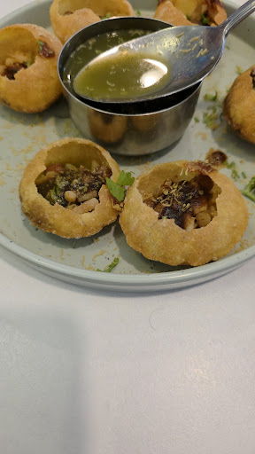 The pani poori was absolutely on point. The pooris were super crisp and fresh, none of that soggy or chewy stuff you sometimes get elsewhere. They had that perfect crunch when you bite into them. The filling was flavorful, a nice mix of spiced mashed potatoes and sprouts, and the pani itself was tangy and spicy in all the right ways. They didn’t go overboard on the spice either so you could really taste the mint and tamarind in the water. It came chilled, which just elevated the whole thing especially on a hot day. Honestly I could’ve had two plates of just that.