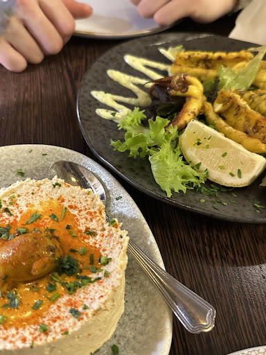 We ordered calamari and hummus for starters and didn’t have any issues with it as such. Only pointer for calamari that there were 5 pieces for £9.99…a little over priced for the portion in my opinion. Please see picture for reference.