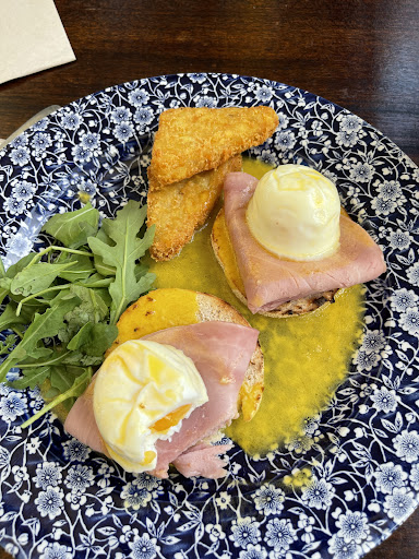 My wife ordered the Eggs Royal. 10 minutes later, someone came to inform her that there was no salmon. She switched to the Eggs Benedict. I too was having Eggs Benedict. 10 minutes later, they came to tell her that they had no more muffins and would she mind having the meal on a bagel instead. I was lucky enough to have the last surviving muffin for my own Benedict.