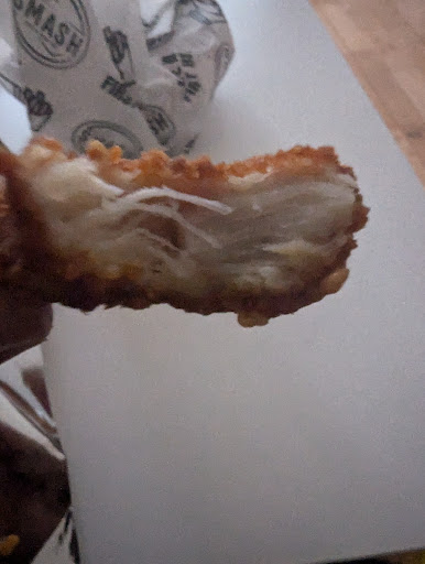 It's the thinnest burger patty I've ever had. The meat was so thinly spread it was day light robbery for £6.50. For the same price you can get premium quality gourmet burgers that are thicker. In fact for £6.50 you can get premium gourmet burger MEAL from a similar burger establishment from Upton Lane across the road from Smash Burgers.