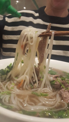 My Pho Ga (chicken pho) was downright horrible. Zero taste, very dry chicken pieces and it had way too many onions and green onions all over it â presumably to make up for the lack of flavor. I asked for hoisin sauce and what they gave me was not that. So even some weird brown sauce and siracha sauce couldnât save it. The noodles were abundant and flat not round.