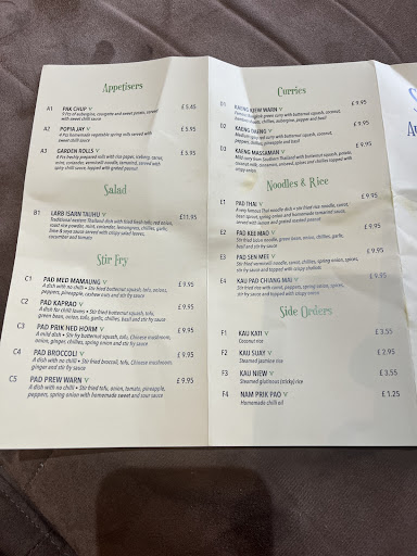 Ā Ā Ā Read moreI would not recommend this restaurant or ever eat the food again. We ordered 3 main dishes, a mixed platter starter and rice. Honestly the only nice part of it was the rice! The green chicken curry was watery and tasteless, the chicken must have been boiled, it was a horrible rubbery texture, a few bamboo shoots thrown in and no other vegetables! Beef panang, meat was tough, sauce was ok but really lacked flavour. We also ordered a spicy chicken dish that was not spicy at all and the sauce basically just tasted of fish sauce. The mixed platter was 2 prawns and some vegetables, the batter on them was so thick and undercooked we actually couldnāt eat it! Iām a big lover of Thai food and have had great Thai in other restaurants but this was seriously bad, we paid Ā£33 for a meal I could have made much better myself! An...