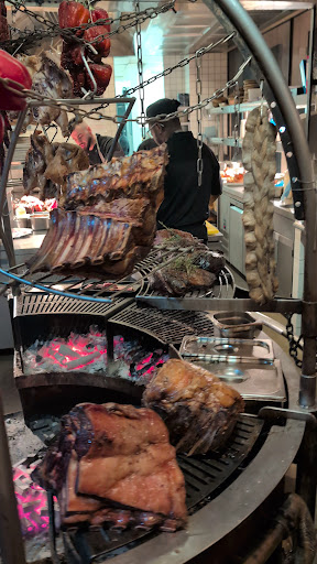 Read moreSet in a beautiful old building with exposed brickwork and a colonial era style island bar, you begin to anticipate something quite special. We were sat across from the open firepit up a small flight of stairs with an intimate view into the back of house operation, with an assortment of meats and vegetables hanging, or on grills, above glowing logs of oak & Birchwood. We ordered 4 bloody Mary's and took what I'm sure is a mandatory photo (or video) of the kitchen at work before studying the menu. We ordered the croquettes and veal butter, which surprisingly arrived well before the drinks. At which point we ordered mains, from the sunday roast menu with carafes of wine. Despite having a Rare rib eye off the bone (for one person) the mains were out in what seemed like 15 minutes, which was amazing. The wines however didn't arrive until we were half way through our mains and that was only because we had inquired about them. On two occasions going to the downstairs bathrooms I noticed that there wasn't a barperson actually in the bar. Perhaps that is only a sample size and not a broader view of the operation, however the beverage service left a lot to be desired and undoubtedly a lot of lost revenue on the floor which should concern any business and is the true intention of reviewing here. We would almost certainly have drank more, had we been offered the opportunity too. As pleasant as the floor staff were, there was also a distinct lack of urgency which exacerbated the growing frustration we experienced. I'm not sure how the service charge works here but on our observation, it does not seem to incentivise good service. The idea that tips are meritorious is lost. That said, would we come back here again?. I think the issues we witnessed are easily fixed and the venue and most certainly the food warrant it. Everyone has an off day. It may just have been one of those for us. I would certainly...