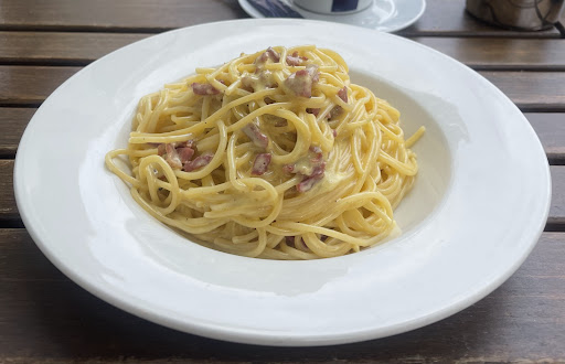 Once seated, the waiter was super kind and asked if I’d like something to drink. I just went with tap water since I didn’t plan on spending more than the cost of the meal. I ordered the Spaghetti Carbonara, my go-to favorite, and I remember being more excited than usual for it because I was really hungry 😂.