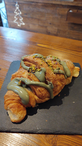 It was a Sunday afternoon so it was pretty busy with a queue and only 2 staff working but we didn't have to wait too long. I ordered the croissant with a mixture of pistachio and hazelnut cream to take away as we were about to have lunch so I didn't eat it on the spot. I had it the next day for breakfast and obviously expected the dough to be a lot less flaky and soft so it's not a big minus for me. The cream filling was really good, both nutty flavours really came through and they were quite generous with the amount of filling stuffed so I was happy. But as a person with a massive sweet tooth I still thought it was way too sweet halfway through the croissant. I suggest to maybe have it in 2 separate goes so you won't be too sugar-high.